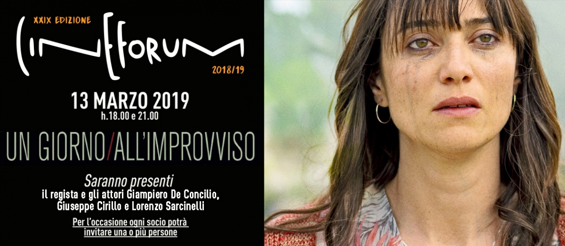 Il regista Ciro D'Emilio, accompagnato dagli attori Giampiero De Concilio, Giuseppe Cirillo e Lorenzo Sarcinelli presenterà l'acclamatissimo UN GIORNO ALL'IMPROVVISO al pubblico di Arci Movie e sarà al Cinema Pierrot di Ponticelli alla fine della proiezione delle ore 18 e all'inizio di quella delle ore 21.
