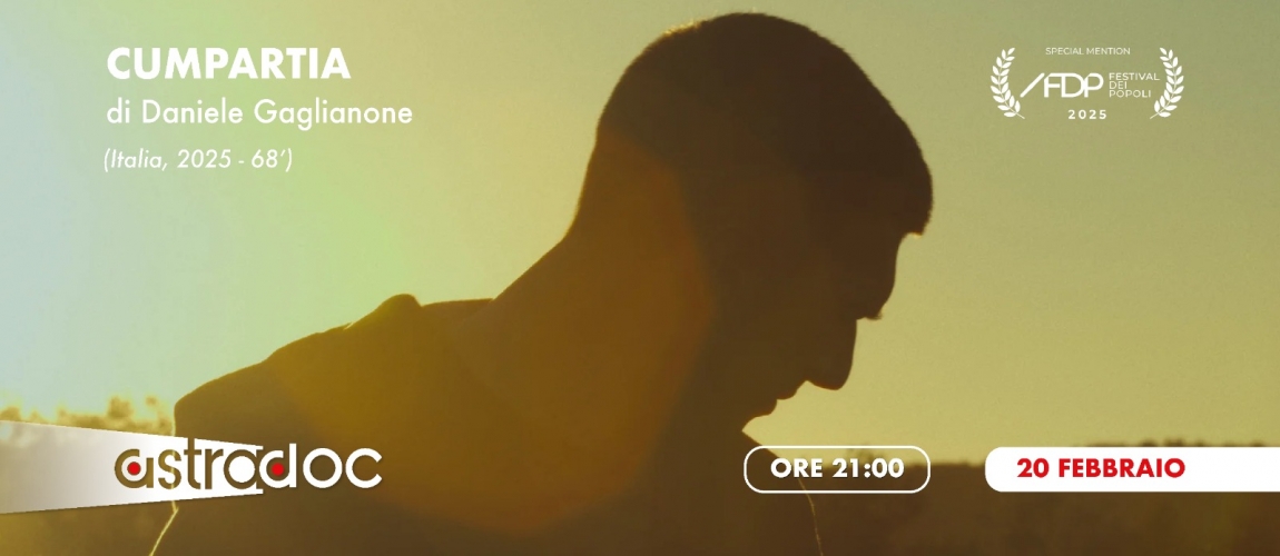 Ad AstraDoc - Viaggio nel cinema del reale arriva l'ultima opera di Daniele Gaglianone, premiato al Festival dei Popoli 2025. La proiezione di Cumpartia è venerdì 20 febbraio alle ore 21:00 presso il Cinema Academy Astra, con l'intervento in sala del regista e di Massimiliano Gaudiosi, docente di Storia del Cinema all'Università Federico II di Napoli. Il film, sostenuto dalla Regione Autonoma della Sardegna, è stato realizzato nella residenza per giovani filmmakers Carbonia Cinema Giovani Filming Lab 2024 del CSC Carbonia della Società Umanitaria