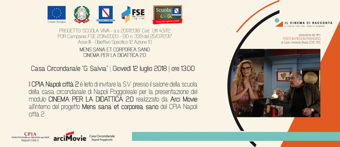 CPIA Napoli città 2 e Arci Movie presentano CINEMA PER LA DIDATTICA 2.0, laboratorio realizzato presso la Casa Circondariale di Napoli Poggioreale nell'ambito della seconda annualità del progetto Scuola Viva - Mens sana et corporea sano.