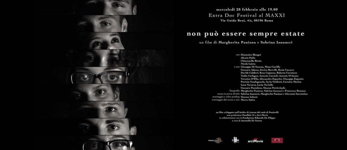 Mercoledi 28 febbraio 2018 alle ore 19.00 sarà in sala al MAXXI di Roma il film di Sabrina Iannucci e Margherita Panizonn NON PUO' ESSERE SEMPRE ESTATE, mentre venerdi 2 marzo 2018 alle 21 sarà proiettato APERTI AL PUBBLICO di Silvia Bellottii a Bologna nell'ambito del festival Visioni Italiane. Infine, sempre nella serata di venerdì 2 marzo, Astradoc - Viaggio nel cinema del reale presenterà a Napoli i film APPUNTI SULLA MIA FAMIGLIA di Caterina Biasiucci e SUB TUUM PRAESIDIUM di Carlo Manzo e Francesco Romano.