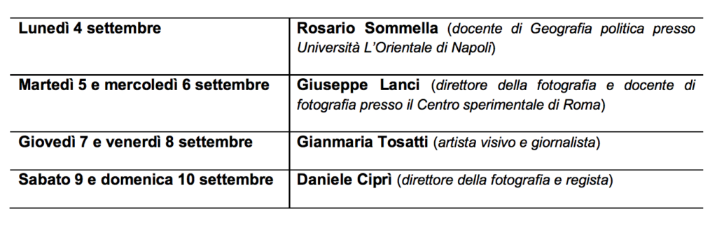 La masterclass, a titolo gratuito, sarà aperta a un numero massimo di 10 partecipanti selezionati in base ai requisiti indicati. L’allestimento del disegno luci per lo spettacolo EXAUDI, curato da Davide Scognamiglio per la regia di Adriana Follieri, si svolgerà dal giorno 11 al giorno 16 settembre presso i Bipiani, nel quartiere Ponticelli.