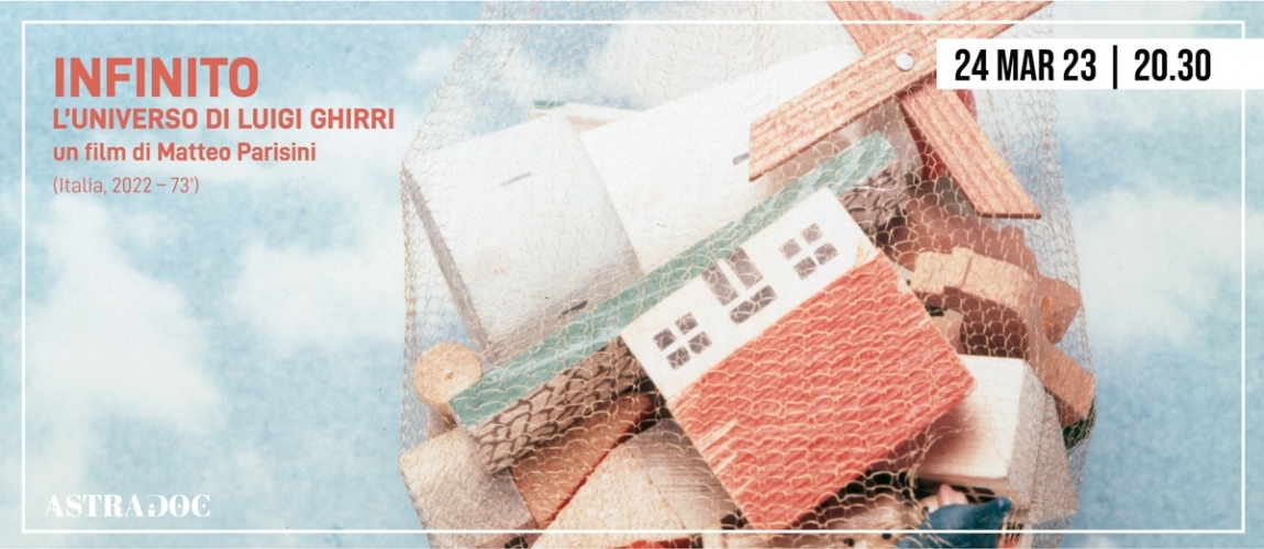 Venerdì 24 marzo 2023 alle ore 20.30 al cinema Astra prosegue il viaggio nel cinema del reale con Infinito. L'universo di Luigi Ghirri di Matteo Parisini (Italia, 2022, 73'), presentato alla scorsa Festa del cinema di Roma (sezione Freestyle) e prodotto da Ladoc.