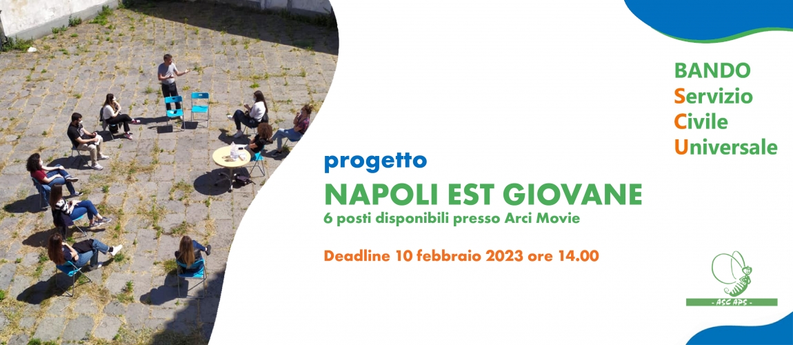 Arci Movie partecipa con il progetto NAPOLI EST GIOVANE, nell'ambito del quale i volontari saranno impegnati a potenziare le attività culturali messe in atto sul territorio, creare occasioni di incontro per giovani, realizzare laboratori per ragazzi, sviluppare attività di rete, incrementare le attività di catalogazione e archiviazione di opere e film della mediateca.